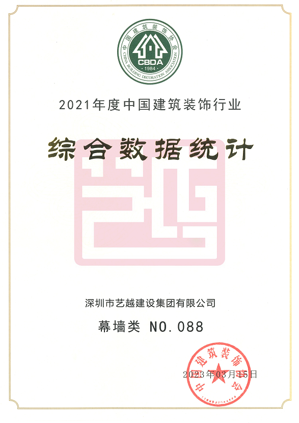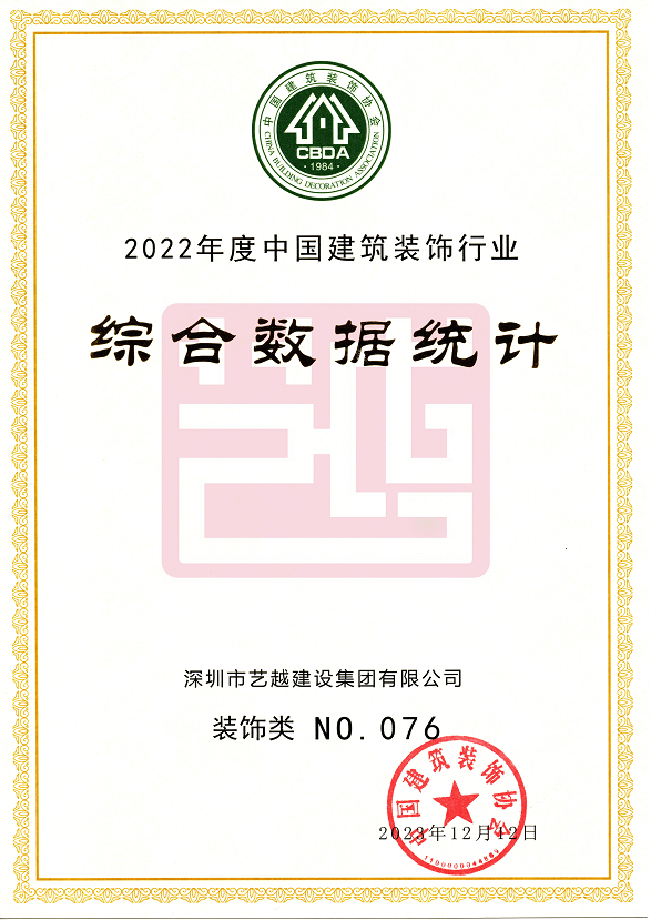 深圳市藝越建設集團有限公司,成立于2010年10月22日,注冊資金為6180萬元,是一家是集建筑、室內外裝飾設計與施工、智能化、市政于一體的綜合性、專業化的集團公司。具有建筑裝修裝飾工程專業承包壹級、建筑幕墻工程專業承包壹級、建筑機電安裝工程專業承包壹級、消防設施工程專業承包壹級、鋼結構工程專業承包壹級、中國展協展覽工程企業壹級、中國展協展覽陳列工程設計與施工壹級、潔凈工程資質壹級、防水防腐保溫工程專業承包壹級、特種工程(結構補強)不分等級、建筑裝飾工程設計專項甲級、建筑幕墻工程設計專項甲級、輕型鋼結構工程設計專項乙級、消防設施工程設計專項乙級、建筑工程施工總承包貳級、市政公用工程施工總承包貳級、電子與智能化工程專業承包貳級、城市及道路照明工程專業承包貳級、環保工程專業承包貳級、施工勞務不分等級、承裝(修、試)電力設施許可證五級、醫療器械經營許可資質貳、叁類、安全技術防范系統設計施工維修資格。質量管理體系(GB/T19001-2016 / ISO9001:2015)標準認證、職業健康安全管理體系(GB/T28001-2011)標準認證,環境管理體系(GB/T24001-2016/ISO14001:2015)標準認證。中國建筑裝飾協會常務理事單位、AAA資信單位、連續十二年被評為“守合同重信用企業”。